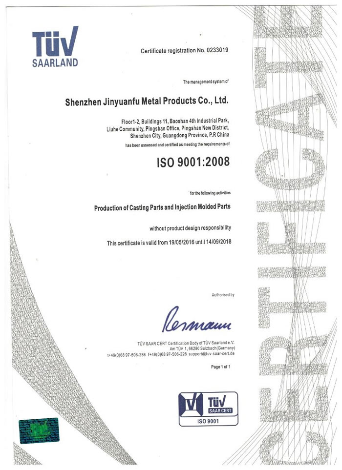 深圳市金源福五金制品有限公司成立于2003年。公司擁有8000多平方米生產廠地、開發(fā)與管理精英人才、技術專業(yè)、設備精良、交通便利、服務周全、具體設計、開發(fā)、制模、出樣、生產到成品出貨一體化模式生產廠家。已通過ISO9001:2008ISO1440/TS16949:2009國際質量體系認證。專業(yè)生產鋅合金壓鑄、鋁合金壓鑄產品、汽車配件、汽車后視鏡支架、車載導航散熱器、LED散熱器、LED燈罩、數(shù)碼電子五金結構件、家具五金裝飾件、標牌(LOGO)等五金壓鑄產品。